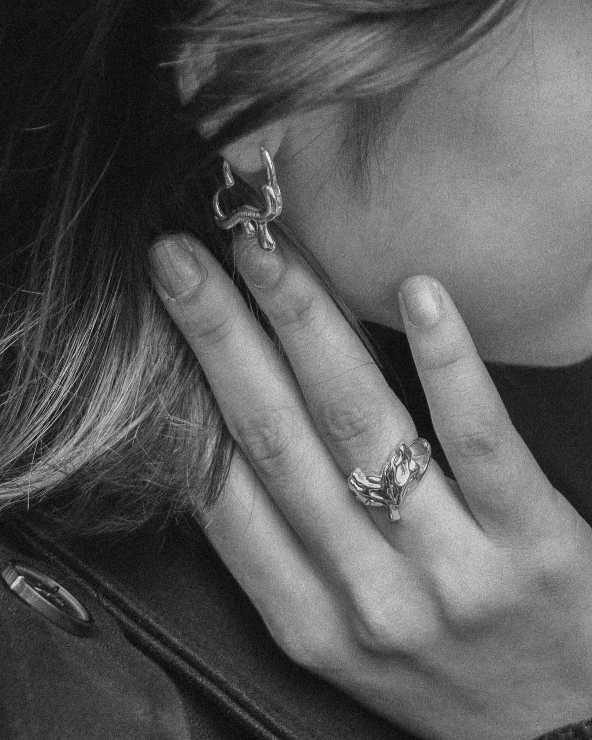 Tại xưởng bạc khép kín, người thợ của Of The Sun tiến hành quy trình tạo khuôn từ cây sáp. Sử dụng bạc S925 cao cấp, đun nóng chảy rồi rót vào khuôn để tạo nên cây bạc, mỗi nhánh tương ứng với một sản phẩm. Khi đã có được cây bạc, lần lượt mỗi nhánh được tách rời, trải qua các công đoạn mài dũa - đánh bóng.