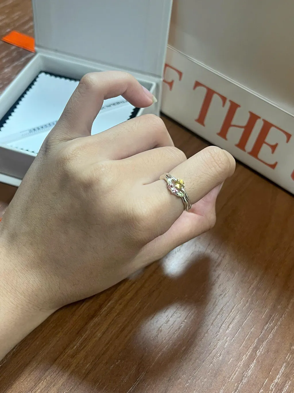 Mỗi chiếc nhẫn được đựng trong hộp được thiết kế tỉ mỉ, thể hiện chất lượng vượt trội của nó. Được chế tác từ gỗ kèm dòng chữ thương hiệu trang nhã với miếng lót nhung sang trọng, nó là minh chứng cho sự xuất sắc, biến việc mở hộp thành một khoảnh khắc thực sự đặc biệt.