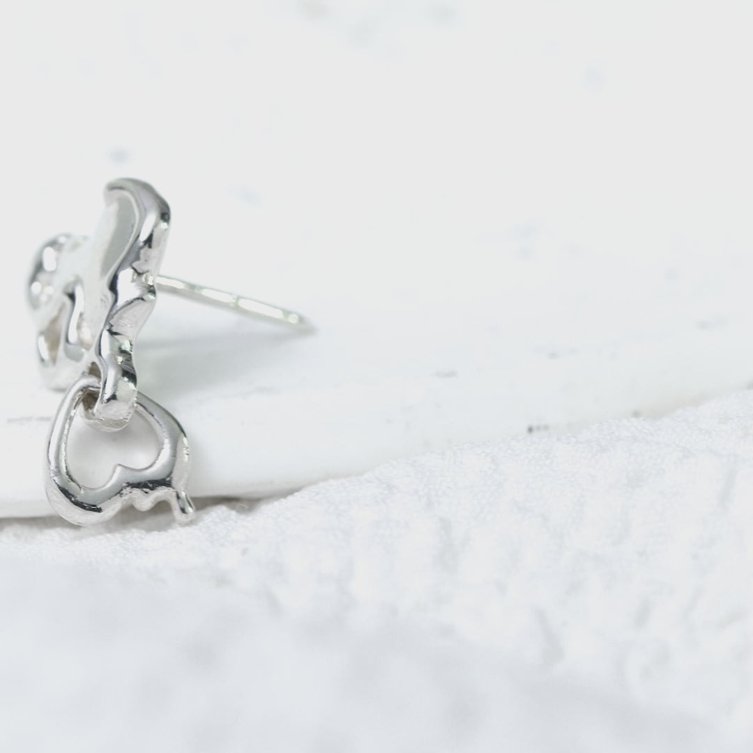 Khuyên tai "Reverse" thể hiện sự sáng tạo và tinh tế trong từng chi tiết. Sản phẩm này được làm từ bạc cao cấp, với thiết kế độc đáo kết hợp giữa hai hình trái tim: một trái tim đặc ở phần trên và một trái tim khoét rỗng ở phía dưới, tạo nên một sự phản chiếu độc đáo về cả hình dạng lẫn ý nghĩa.